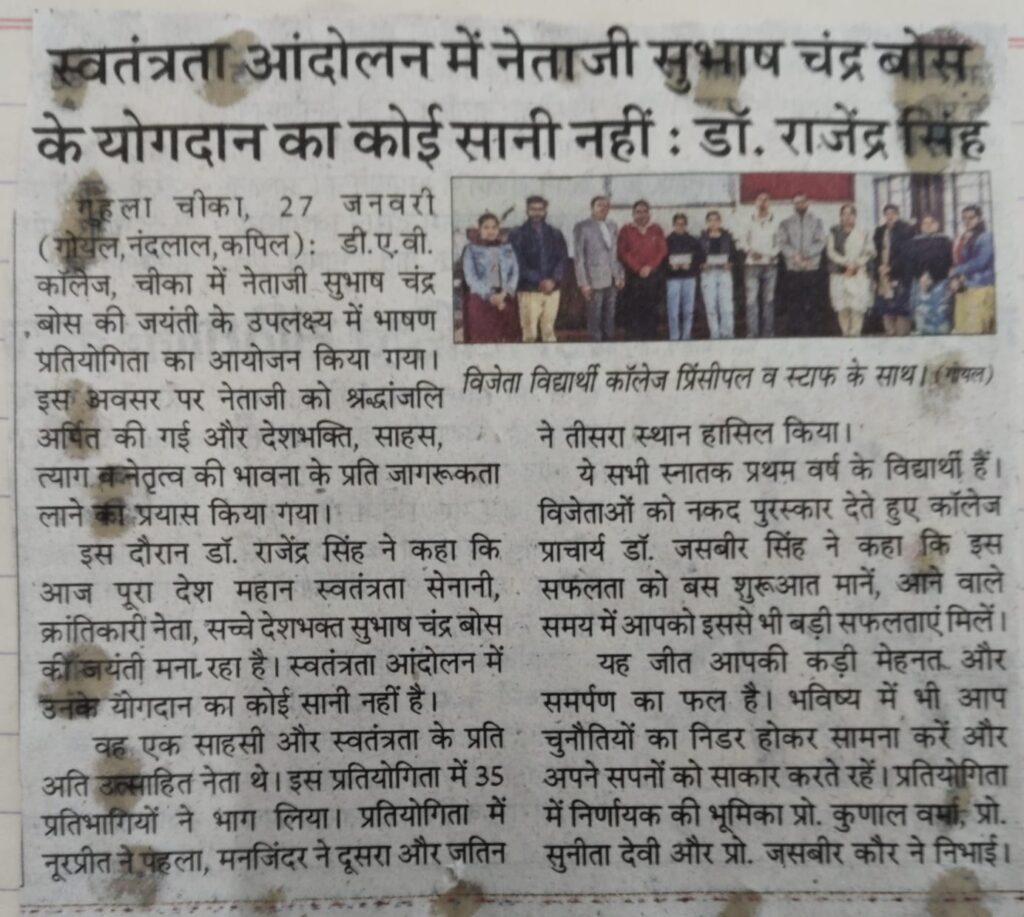 स्वतंत्रता आंदोलन में नेताजी सुभाष चंद्र बोस, के योगदान का कोई सानी नहीं : डॉ. राजेंद्र सिंह
